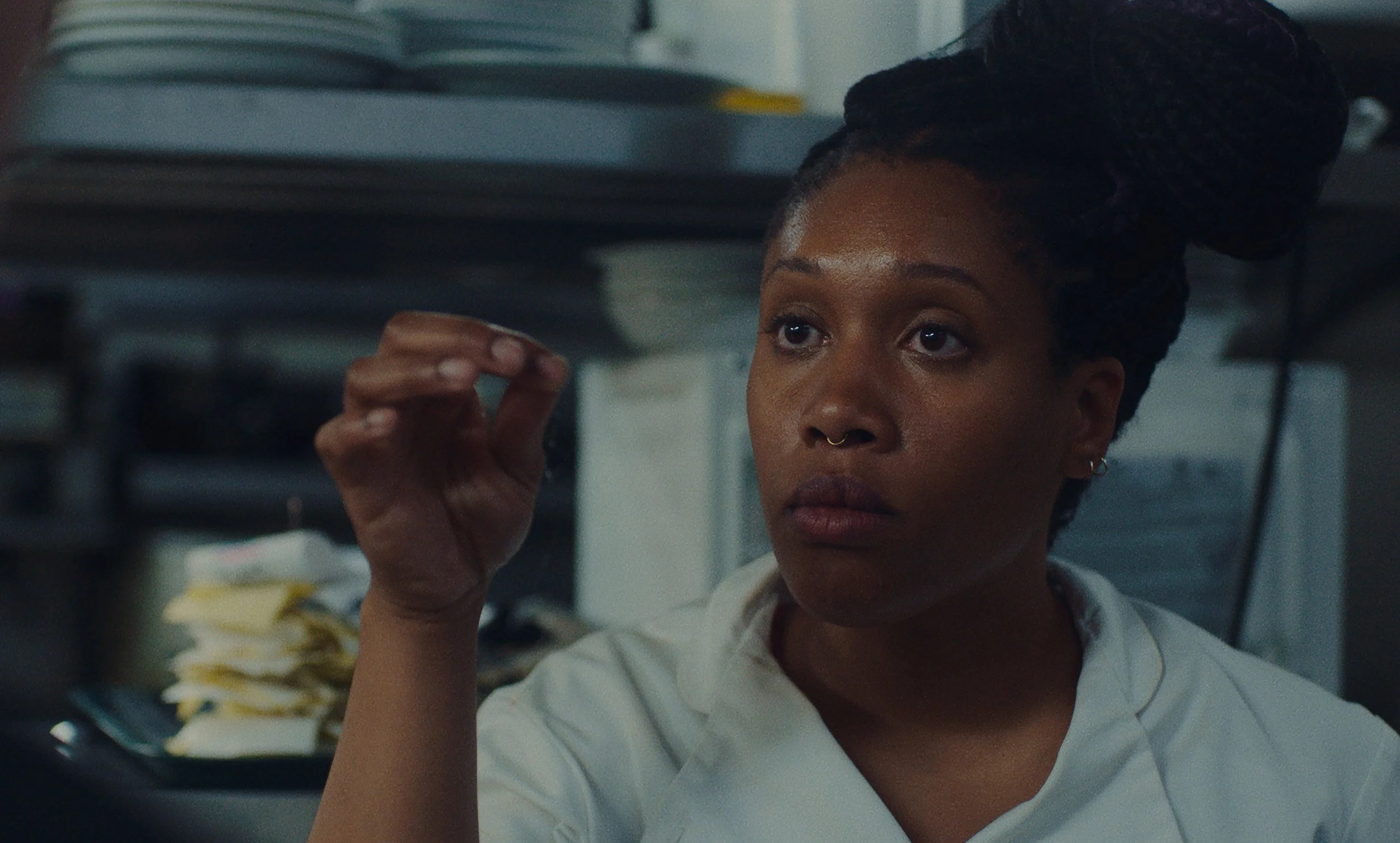 A woman working as a sous-chef navigates toxic restaurant culture and her wavering mental health, until a chance encounter changes her.